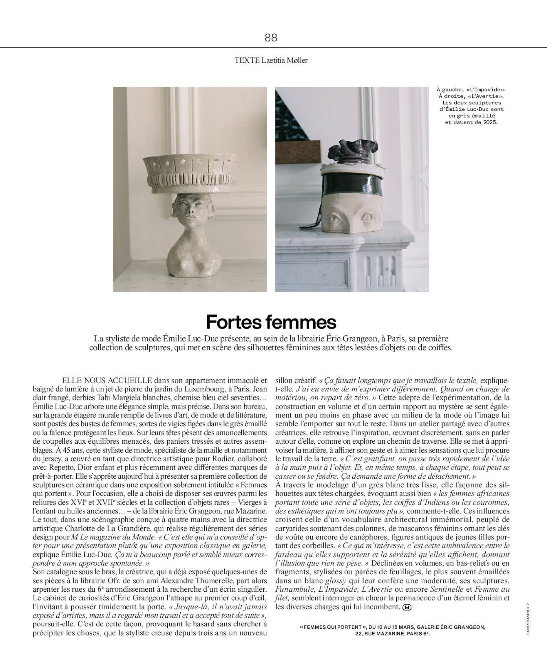 Exposition Femmes qui portent Galerie Eric Grangeon rue Mazarine Paris 6ème